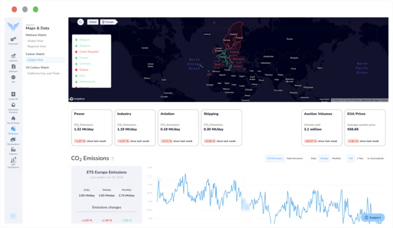 Kayrros Carbon Watch ermöglicht es Emissionshändlern, den besten Handel mit ETS-Zertifikaten zu tätigen, indem sie einen Live-Überblick über die physische Nachfrage nach Emissionszertifikaten erhalten