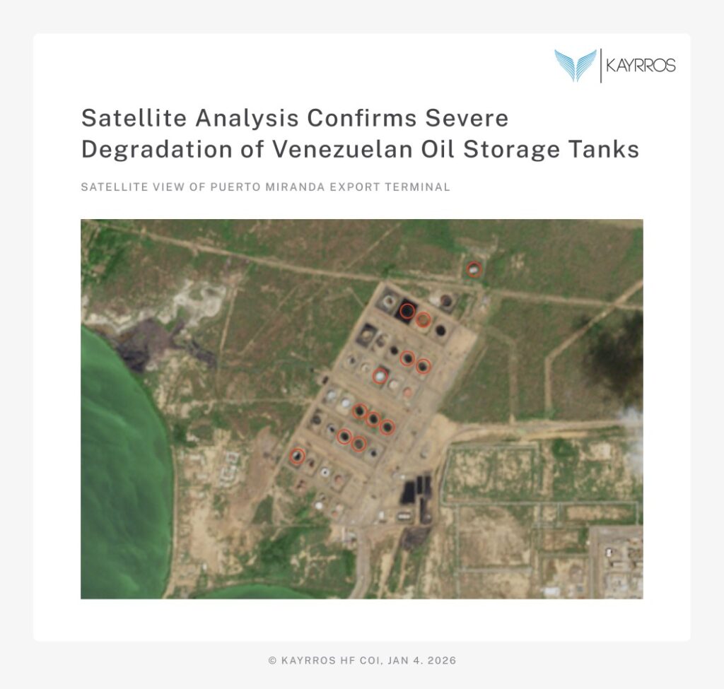 • Examples of infrastructure decay can be seen in most of the other storage facilities in Venezuela, such as Puerto Jose, Amuay, and Puerto La Cruz.